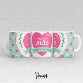 Caneca de Cerâmica - Amo você Mãe, Feliz Dia das Mães