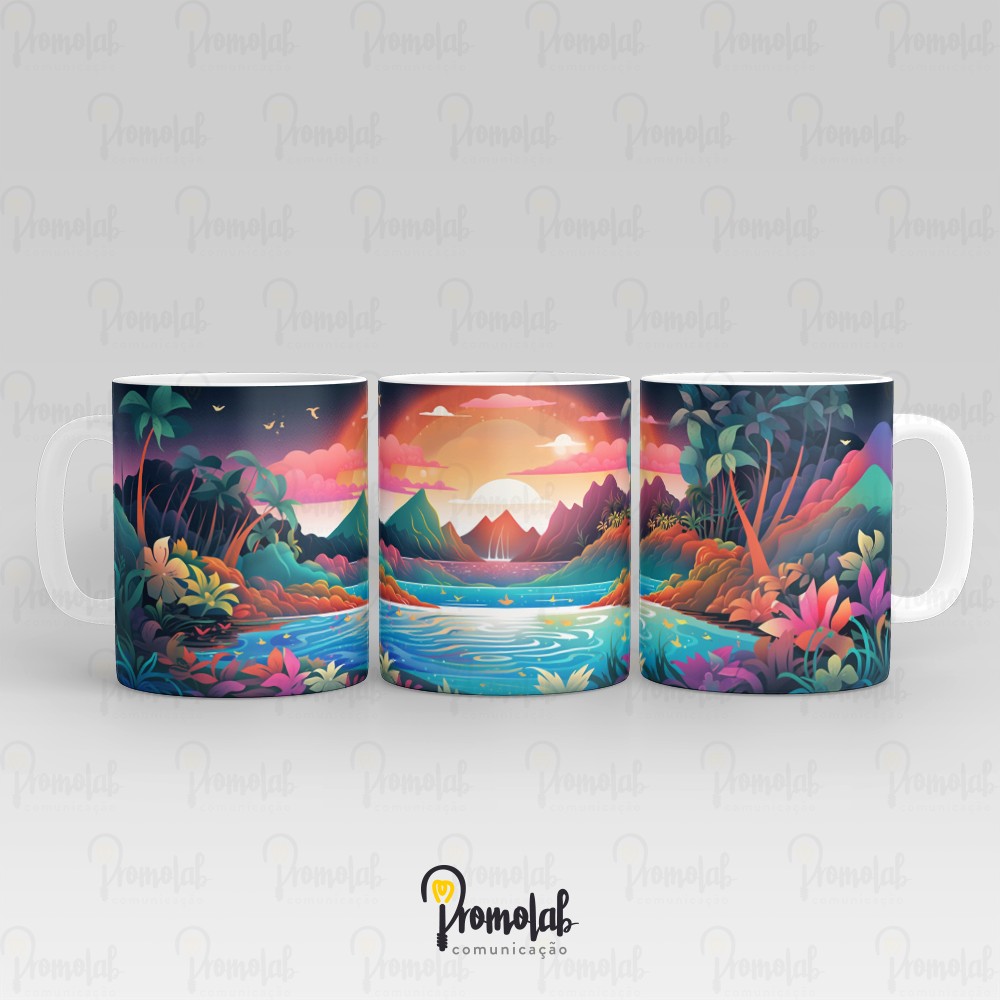 Caneca de cerâmica de alta qualidade personalizada com o tema Ilha Tropical.