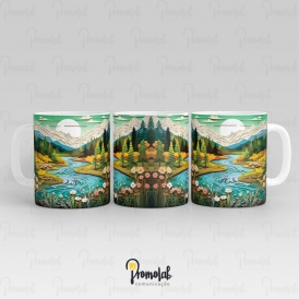 Caneca de cerâmica de alta qualidade personalizada com o tema Montanha e Rio.