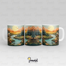 Caneca de cerâmica de alta qualidade personalizada com o tema Montanha e Rio.