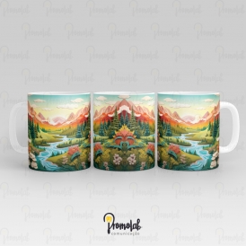 Caneca de cerâmica de alta qualidade personalizada com o tema Montanha e Rio.