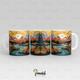 Caneca de cerâmica de alta qualidade personalizada com o tema Montanha e Rio.