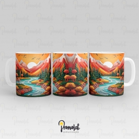 Caneca de cerâmica de alta qualidade personalizada com o tema Montanha e Rio.