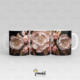 Caneca de cerâmica de alta qualidade personalizada com o tema Peônias Antigas.