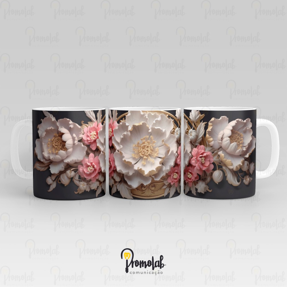Caneca de cerâmica de alta qualidade personalizada com o tema Peônias Antigas.