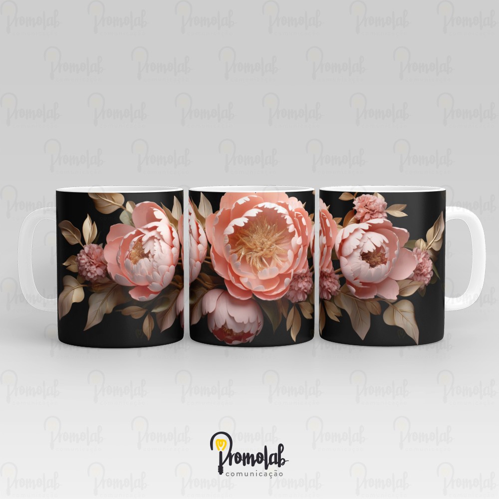 Caneca de cerâmica de alta qualidade personalizada com o tema Peônias Antigas.