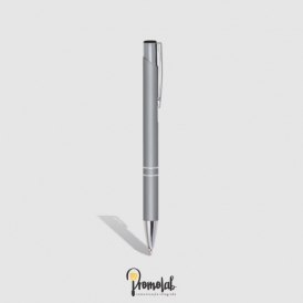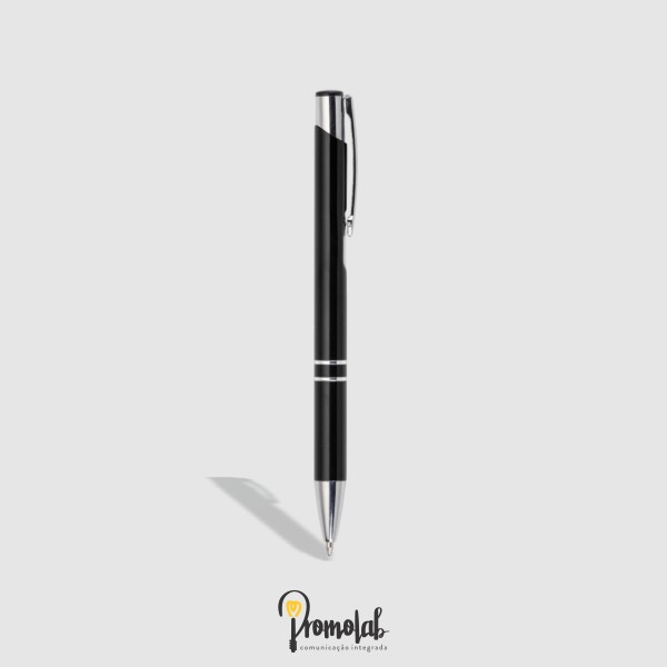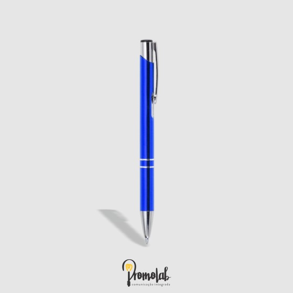 Caneta metálica com carga esferográfica azul 1.0mm e acionamento por clique.