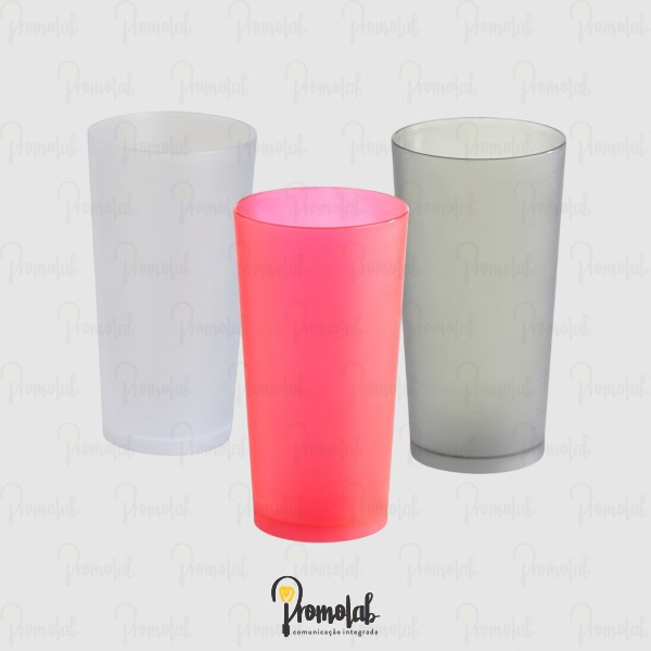 Copo plástico com acabamento fosco. Consulte as cores disponíveis. Personalize o seu!