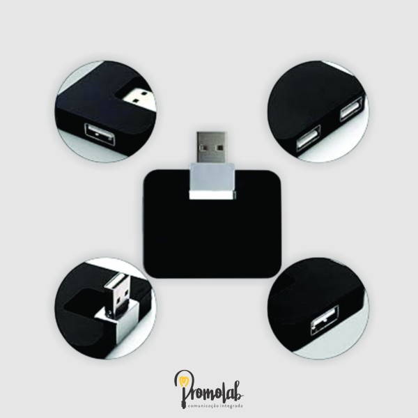 Hub USB 2.0 com 4 portas para conectar até 4 dispositivos móveis.