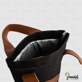 Feito em nylon com revestimento térmico em PEVA atóxico, conta com fechamento em velcro para abrir e fechar com praticidade, além de detalhes em couro sintético na alça e no espaço de personalização.
